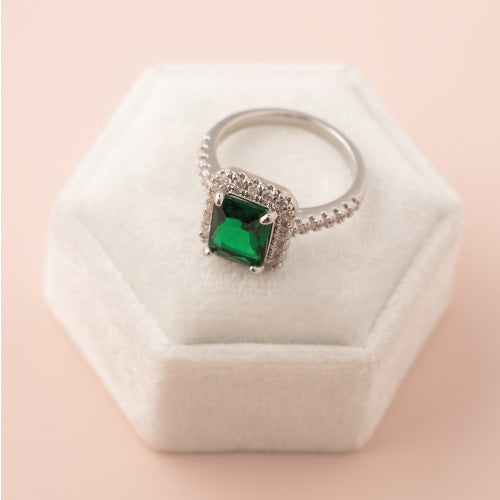 She’s got main character energy. The Hazel ring features a bold emerald-cut green zircon stone, framed in not one, but two halos of sparkling CZ stones. The pavé band adds even more shine for a look that’s pure drama. Glamorous, timeless, and ready for her spotlight.
