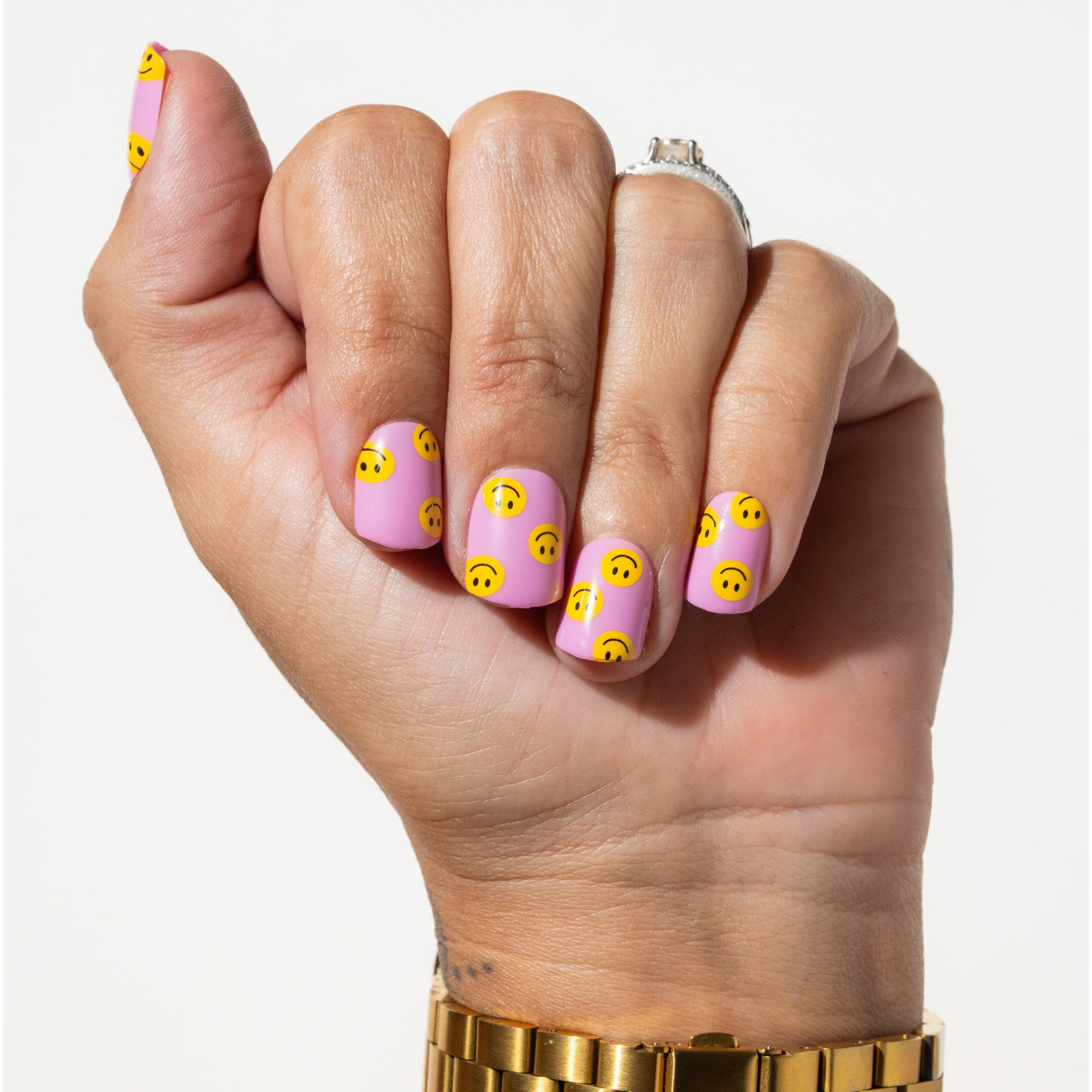 COLOR: Pink Mauve with Yellow Smiley Faces
