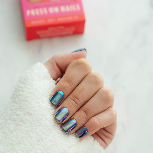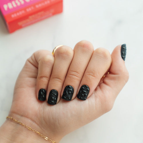 - 24 press on nails in 12 different sizes that are designed to fit petite, average, and large nail beds