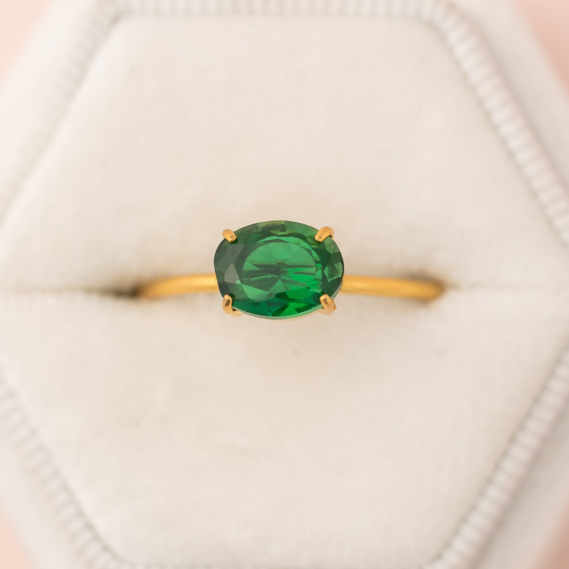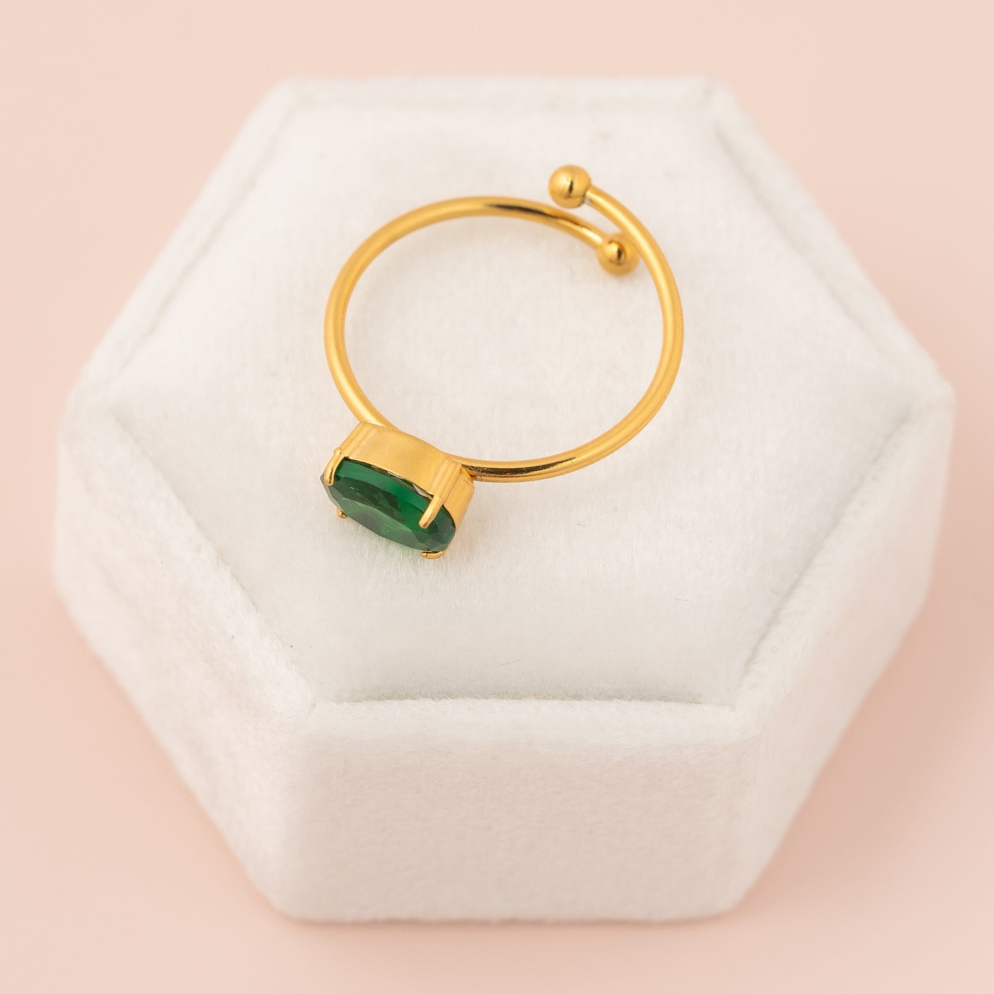 The Hannah ring features a striking oval-cut stone set in a slender gold band—available in two rich color options: emerald green or black onyx. Whether you're feeling vibrant or mysterious, this classic silhouette brings just the right amount of drama. Stack it or let it shine solo—either way, the Hannah is here to turn heads.
