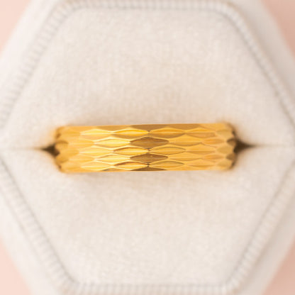 A fresh twist on the classic band. The Bessie ring features a faceted diamond-cut texture that catches the light just right. Available in sleek silver or bold gold, it's a go-to piece for everyday shine or stacking with your favorites.
