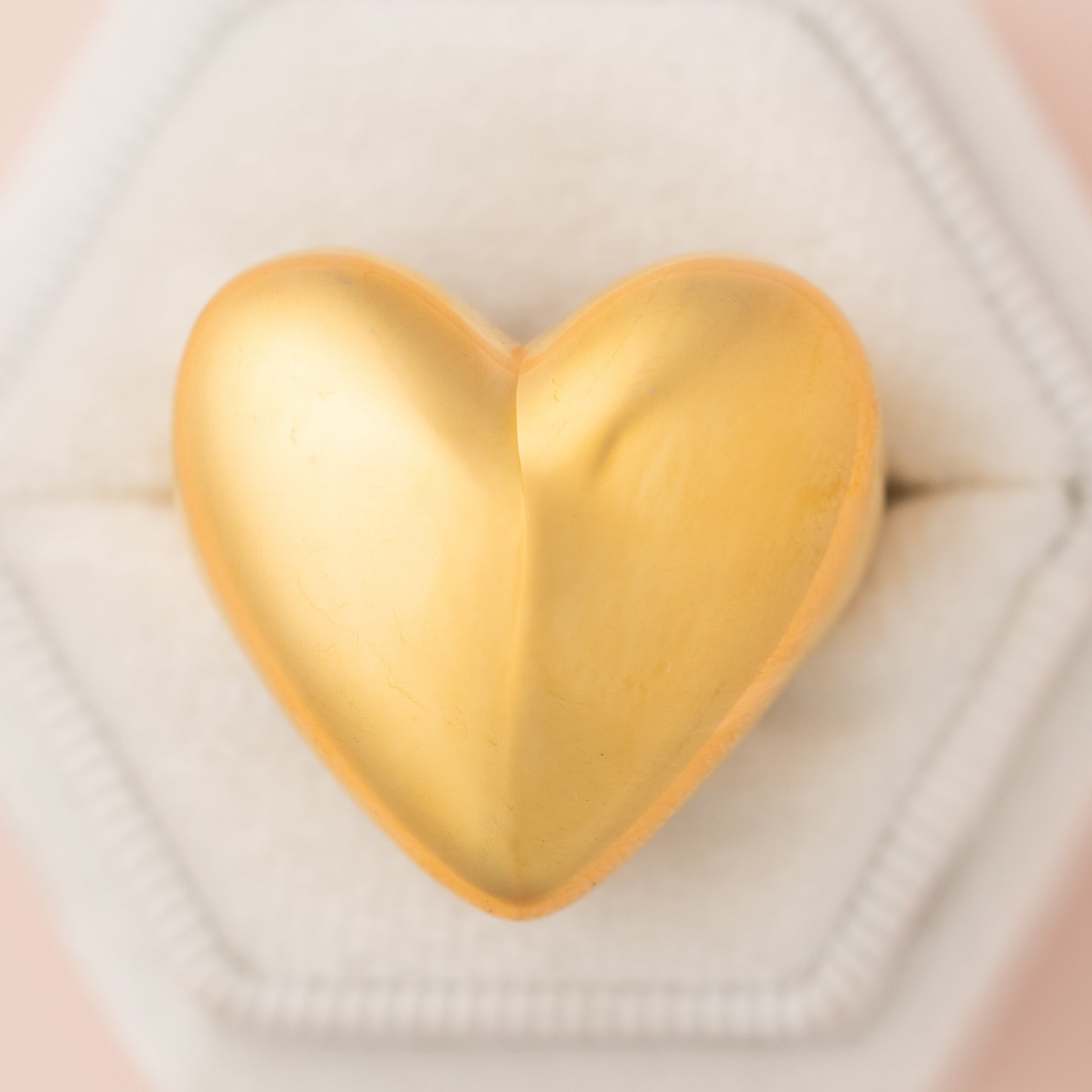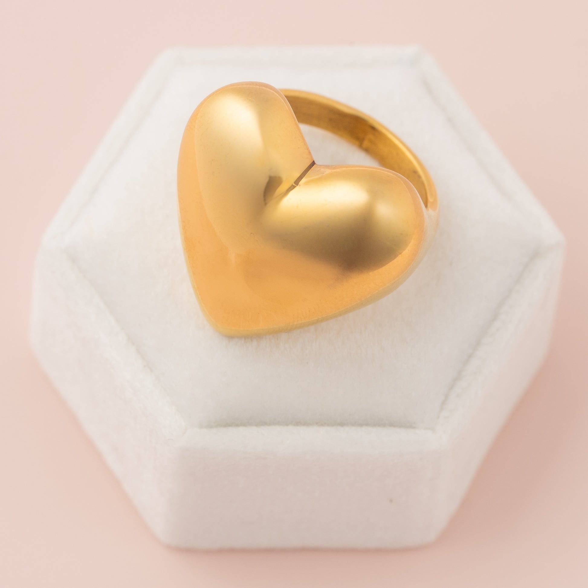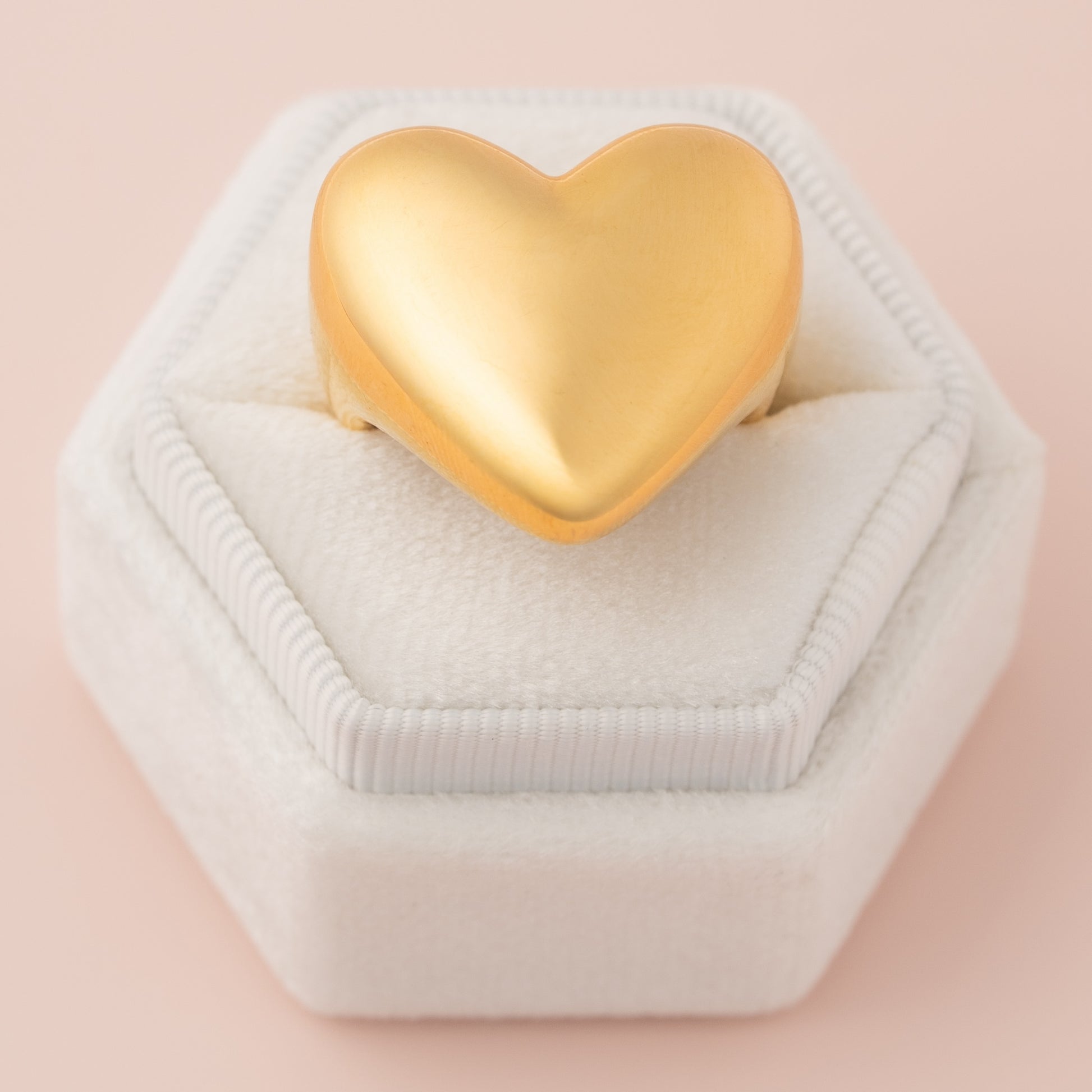 Puffy Gold Heart Statement Ring – Bold & Romantic