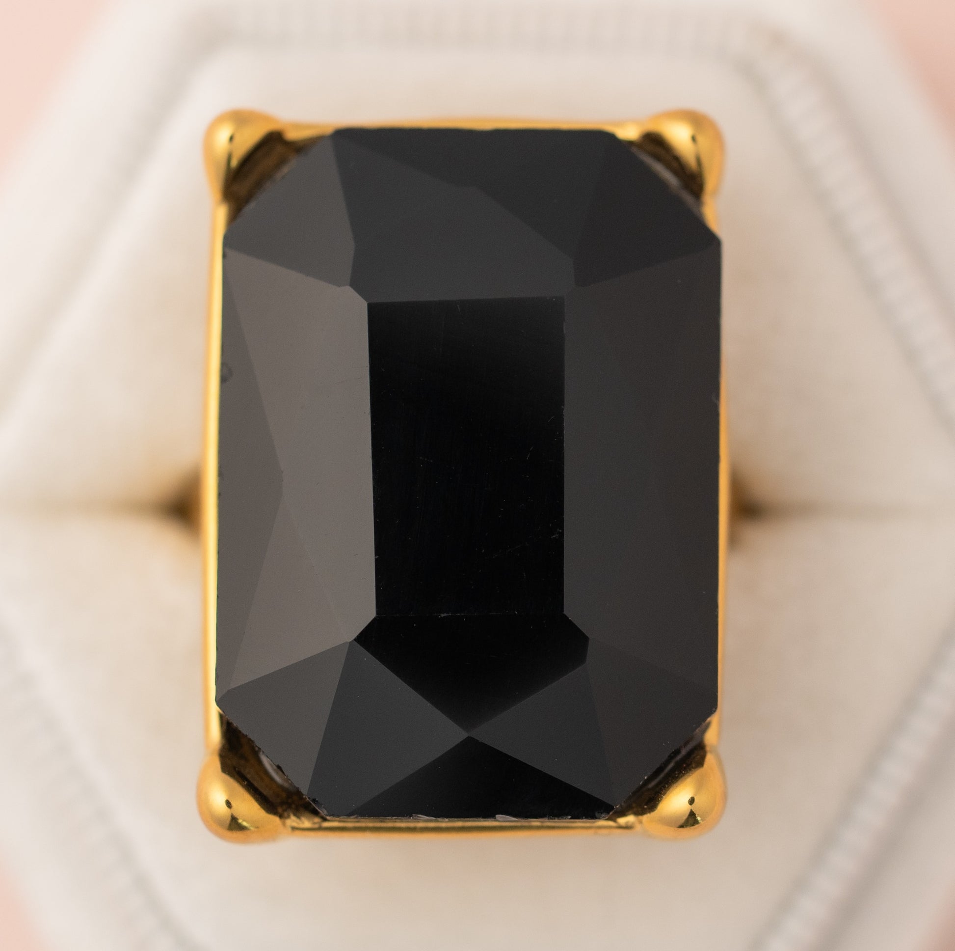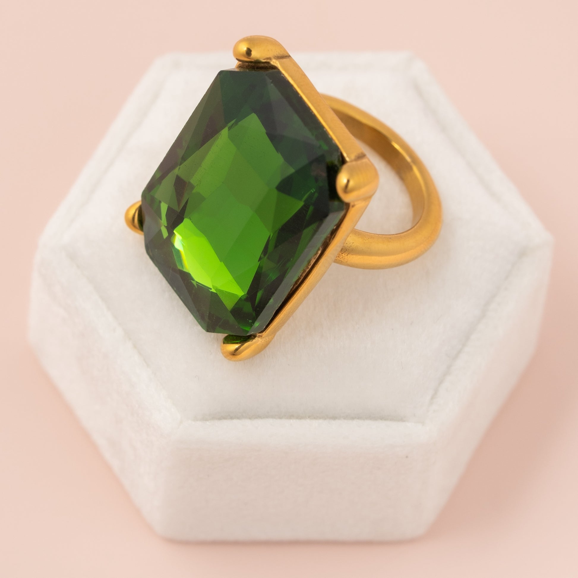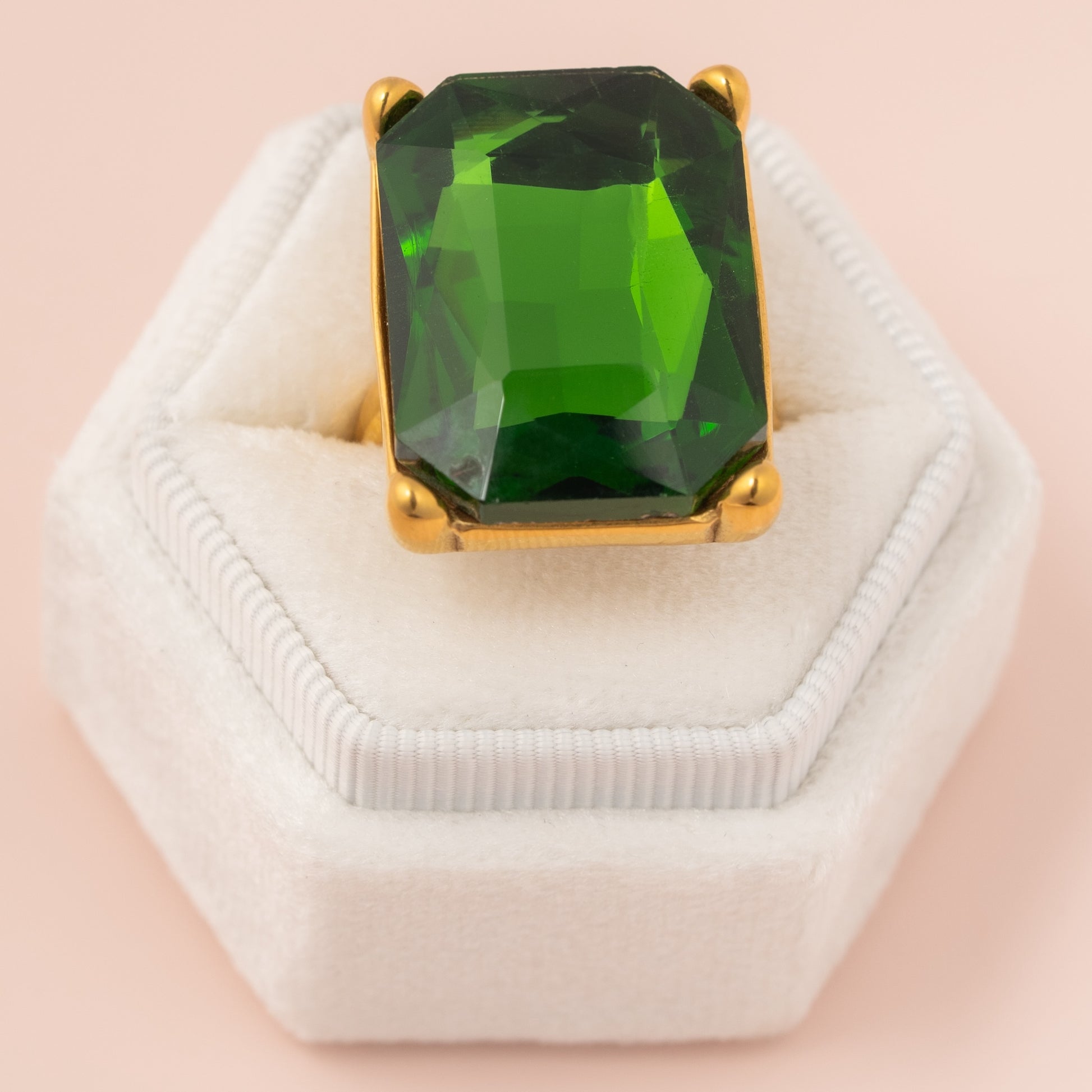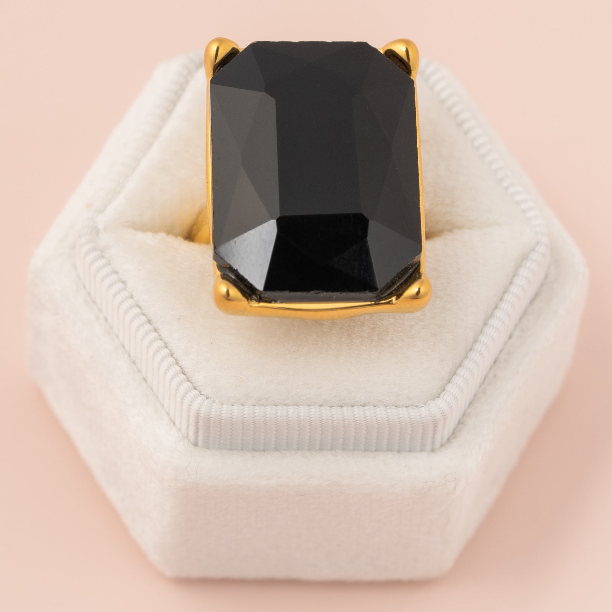 Big, brilliant, and made to turn heads, the Morgan ring features an oversized emerald-cut stone set in a gold band, available in two striking shades: deep onyx or vivid green. Whether you're channeling bold elegance or edgy glam, this ring is your go-to power piece.
