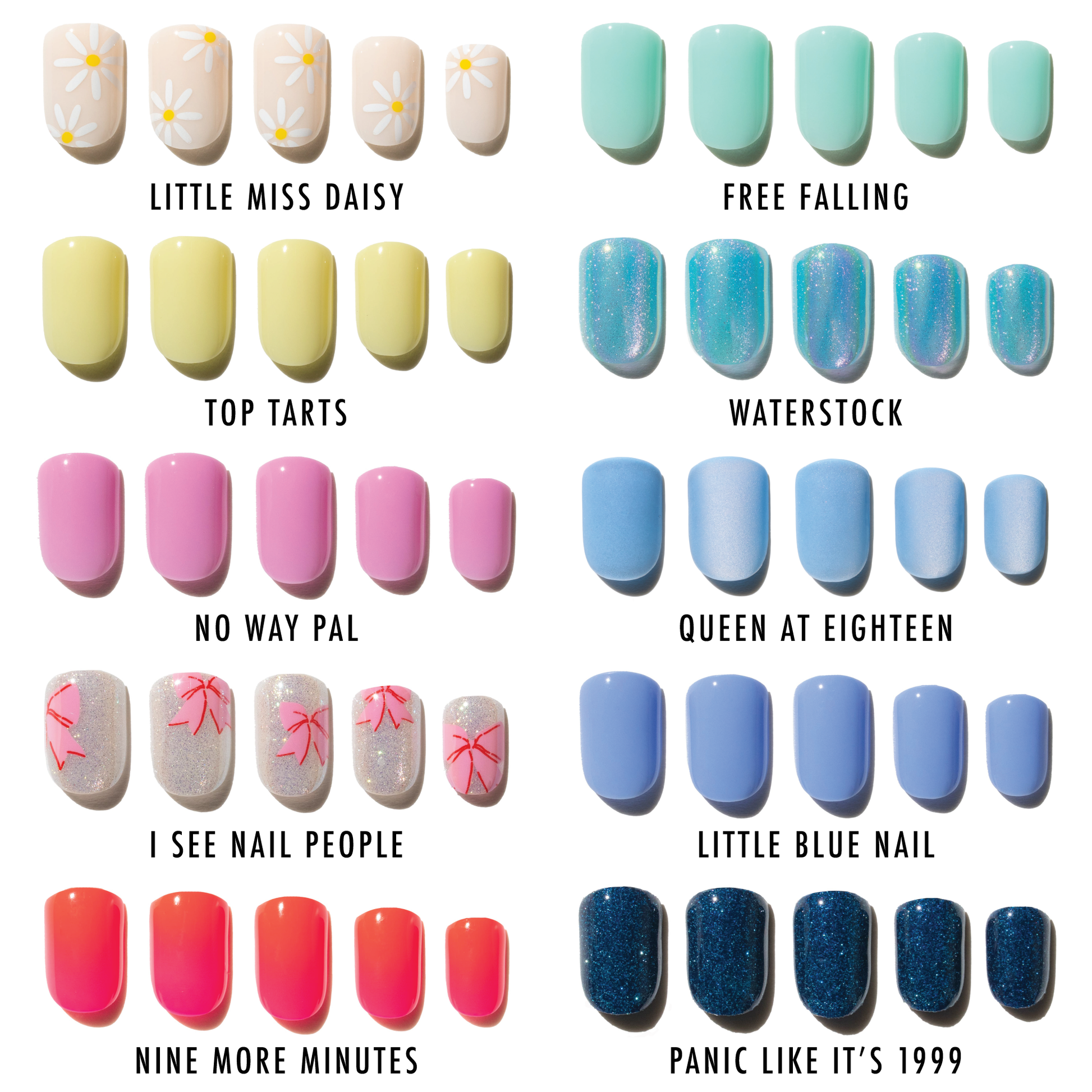 - 24 press on nails in 12 different sizes that are designed to fit petite, average, and large nail beds