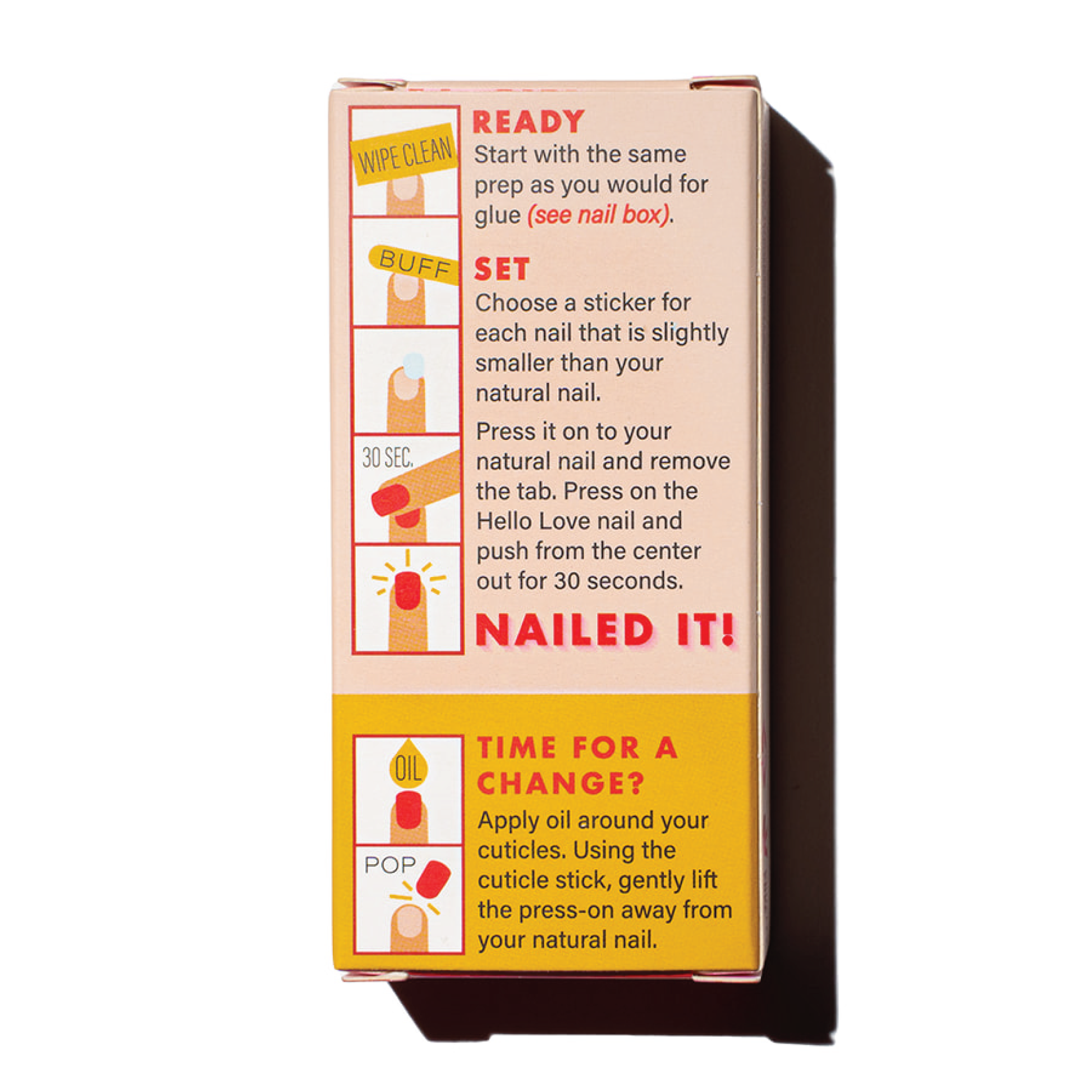 FOR LONGER LASTING, LESS DAMAGING WEAR: Use a size slightly smaller than your natural nail, then add glue (either a drop of tube glue or brush-on glue over the sticker)