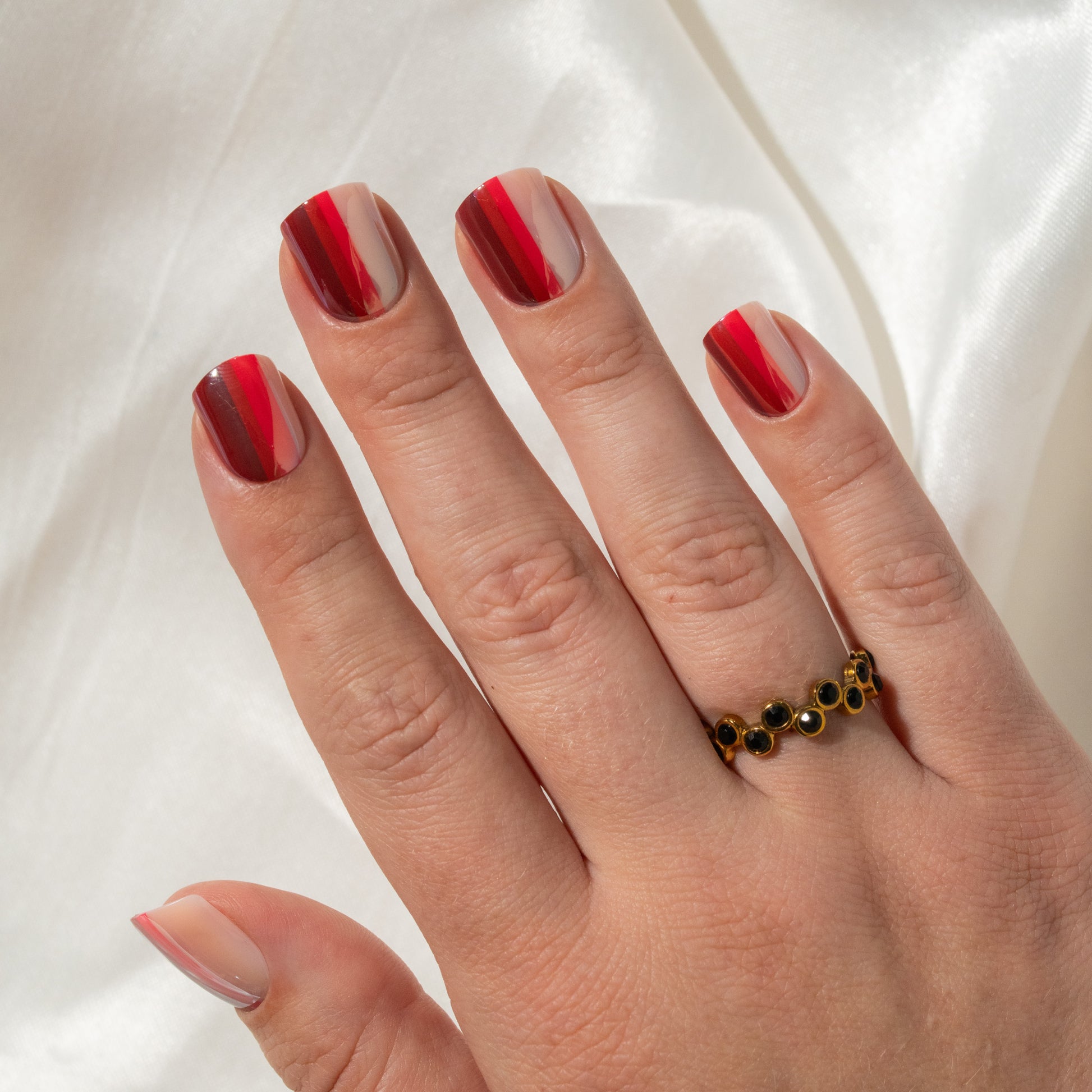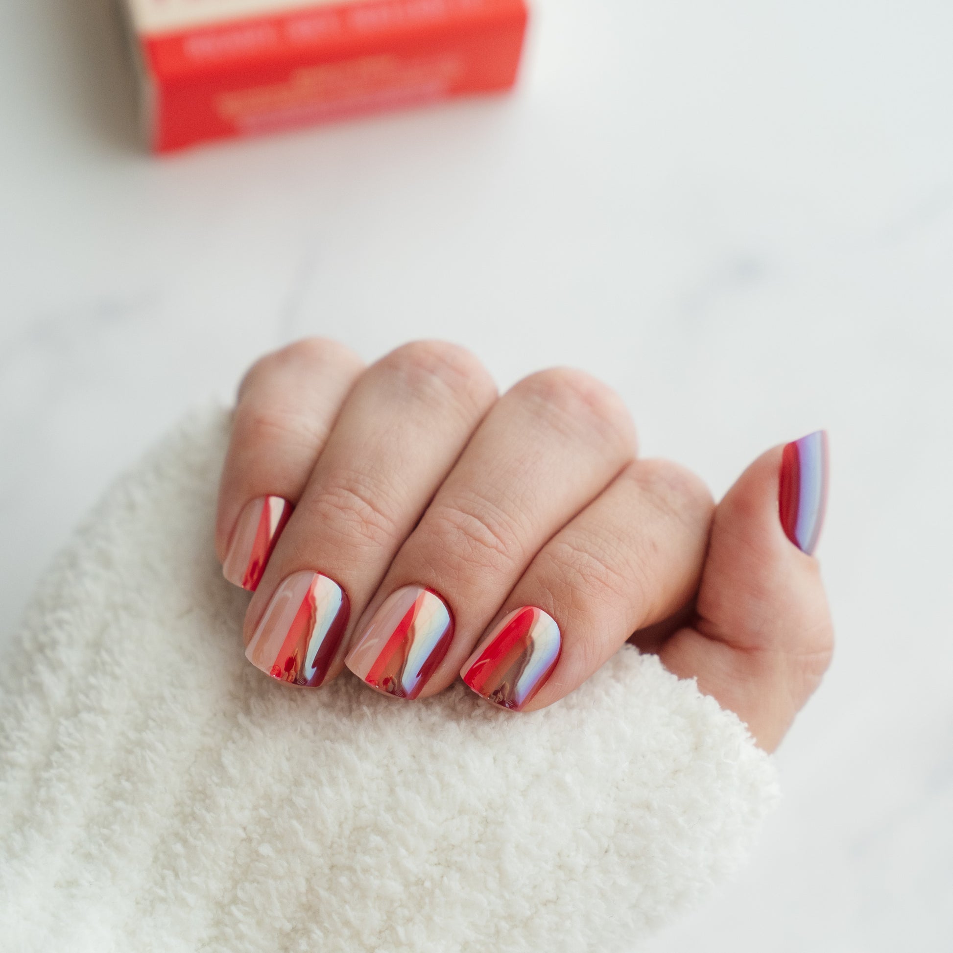 At Hello Love HQ, the fiercest meeting of the day is the lunch debate. Menu negotiations start the minute we clock in. By 9:01 a.m. we’re working hard... on the group chat about what to order. We usually spend more time planning lunch than eating it. In a bid to be efficient, we even posted a master list of takeout spots in the lunchroom months ago. Spoiler: it hasn’t helped. While the menu changes hourly, your mani doesn’t. What’s for Lunch? is the universal side dish for your outfit: easy, polished, and ready for whatever you’re craving this holiday season. Ombré red and pink stripes, complemented by a high-gloss finish, make it a go-to for all your festive get-togethers.