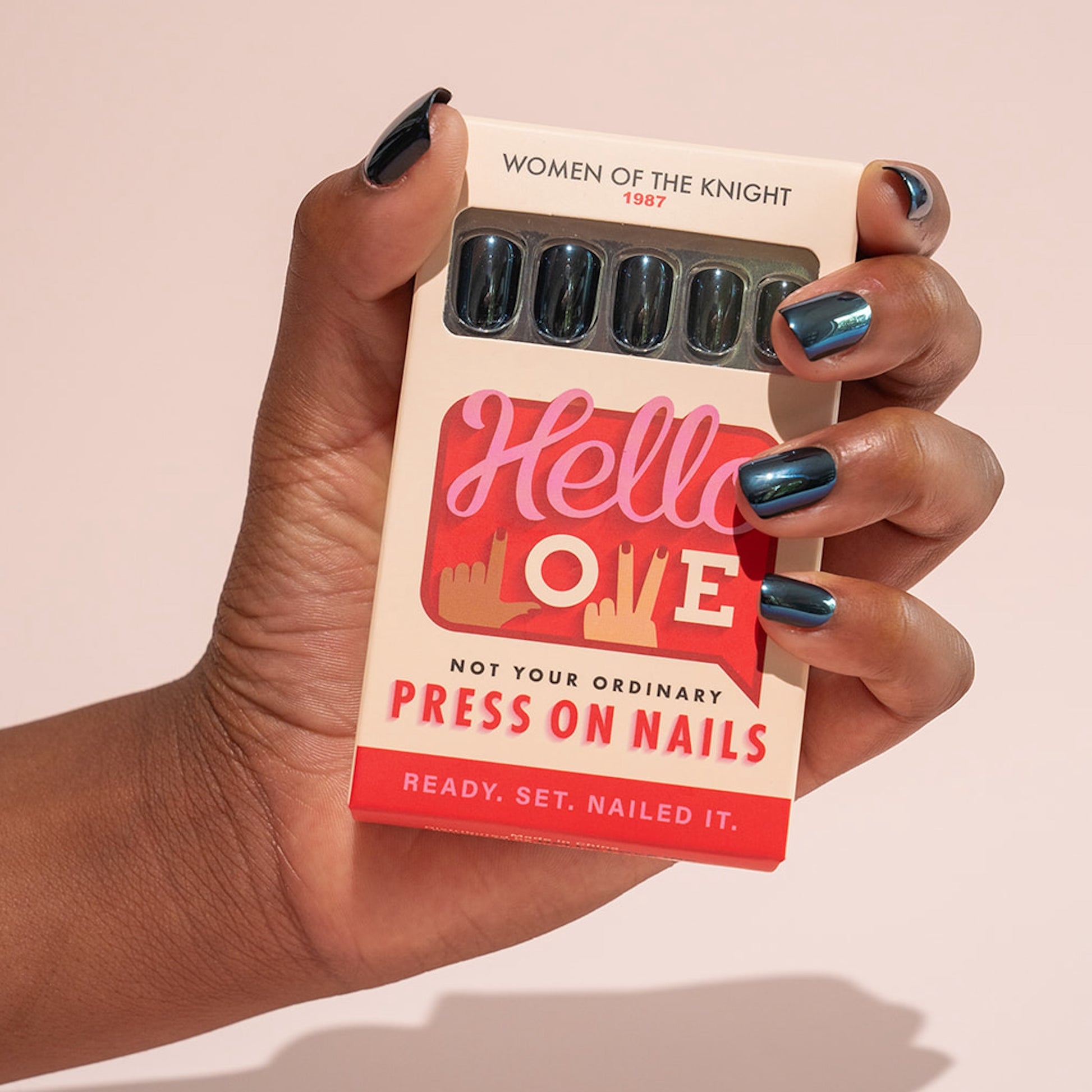 - 24 press on nails in 12 different sizes that are designed to fit petite, average, and large nail beds